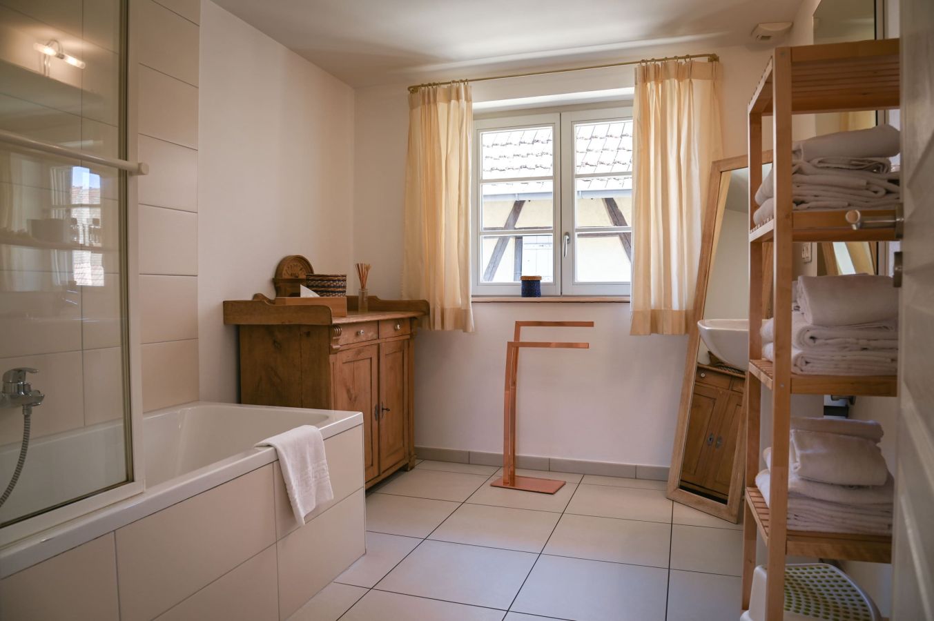 Le gîte Léon vous invite à faire une pause ressourçante dans une ambiance cosy et alsacienne. Situé sous les combles, il offre une large vue sur les toits d’Eguisheim, avec les 3 châteaux en toile de fond.